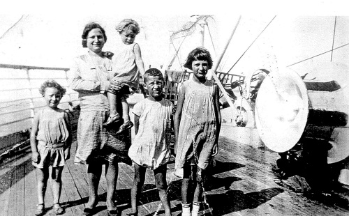 Ida Peloni (madre di Liliana Cipollini) in viaggio con i figli verso l'Argentina a bordo del vapore "Duilio".