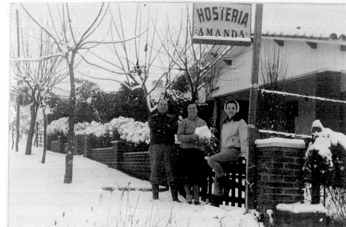 Aldo Martini di fronte alla "Hosteria Amanda", 1960.