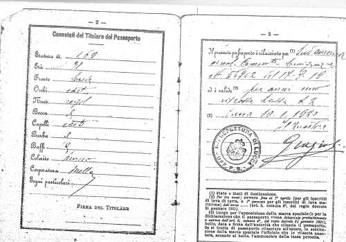 Angel Norberto Vannucci ci invia la copia del passaporto del proprio avo Silvio Vannucci nato in Montecatini Valdinievole il 29 dicembre 1888. Il passaporto fu rilasciato dalla Prefettura di Lucca in data 10.01.1920.